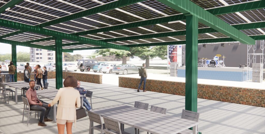 In addition, England’s solar shade structure and bar expansion is well-timed because the city of Mattoon, in partnership with Rural King, has been developing the Emerald Acres Sports Connection, a $66 million multipurpose sports complex. When complete, it will include indoor and outdoor facilities for baseball, softball, basketball, and volleyball. The goal is to attract sports teams from Chicago, Indianapolis, and St. Louis for competitive tournaments. The outdoor entertainment at The Castle Pub will provide local families, as well as out-of-town visitors, a place to unwind in the evenings. After a hot day in the sun watching sports, the solar canopy will offer a welcome way to relax.